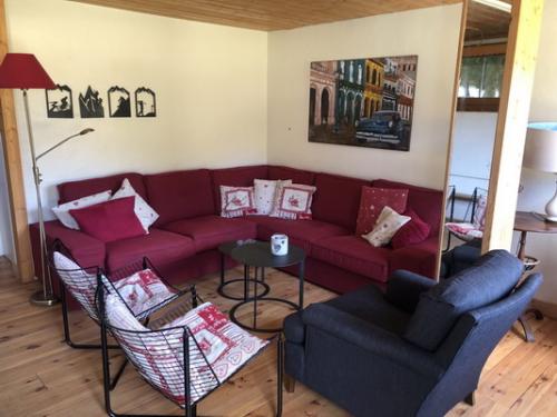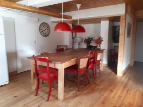 Dans l’appartement la table à manger offre de la place pour 10 personnes. Dans le salon vous trouverez un grand sofa.